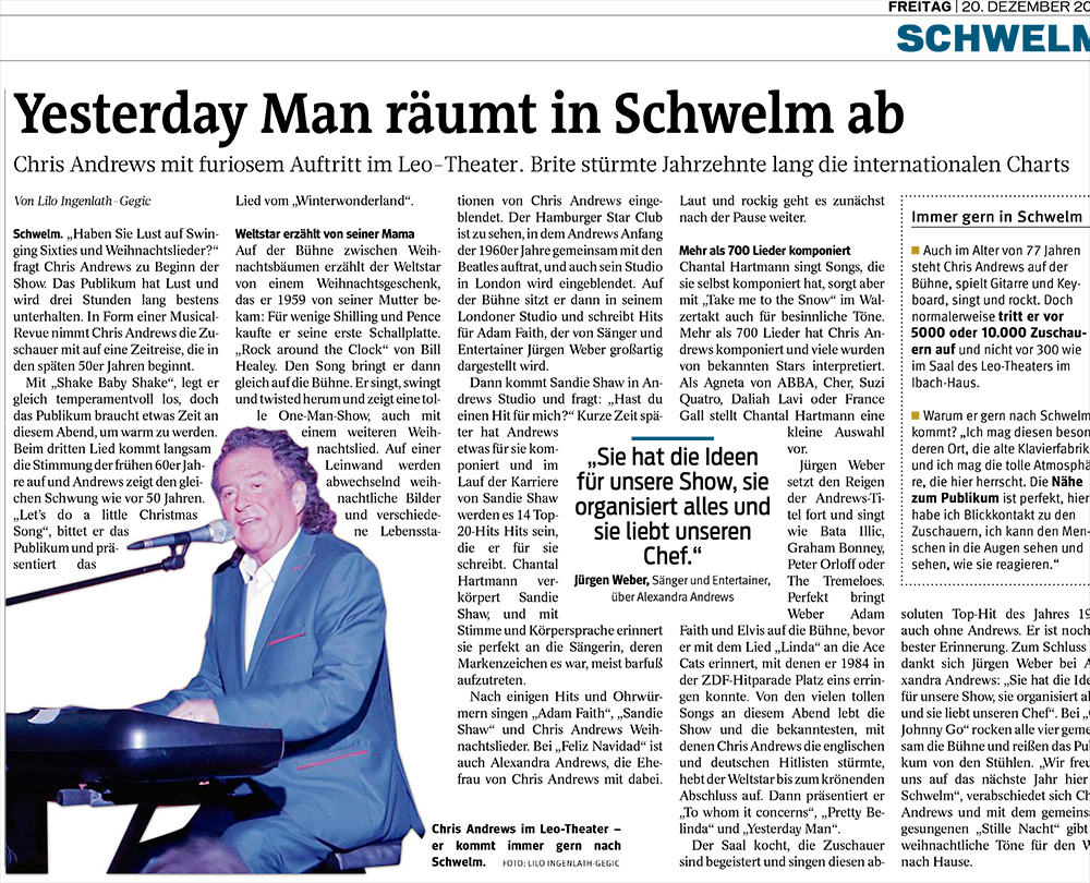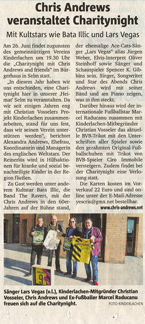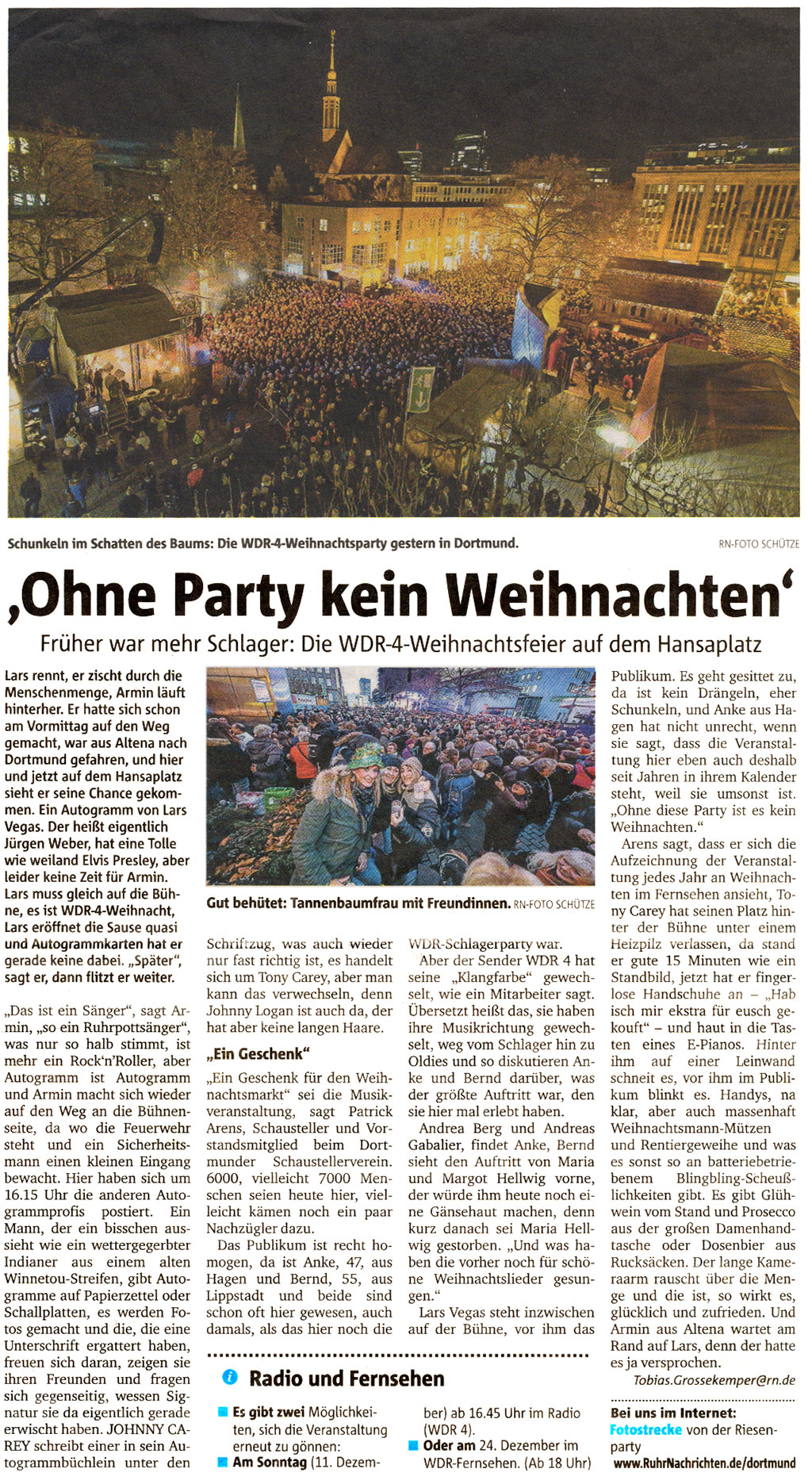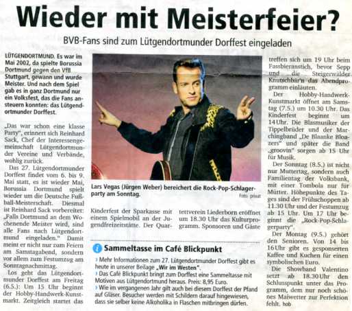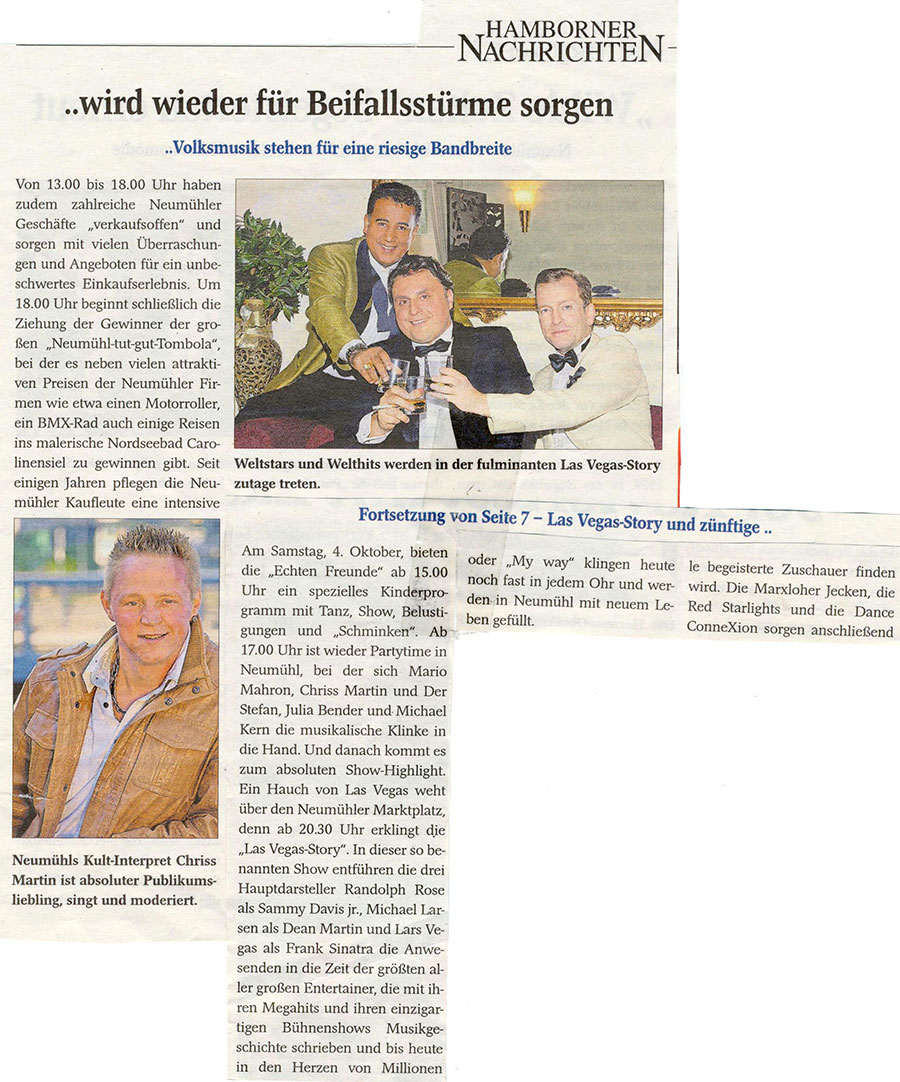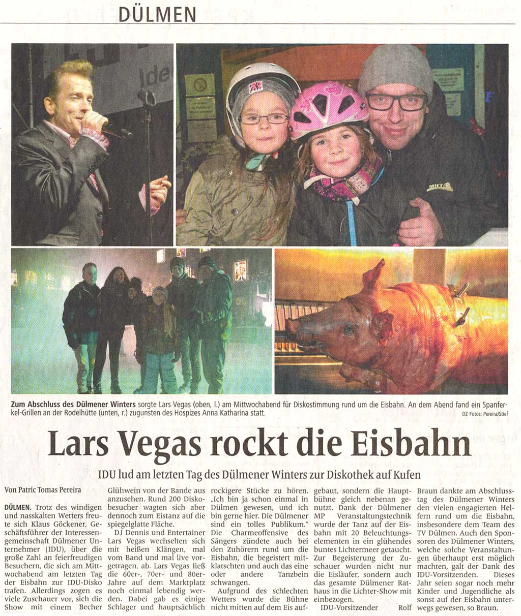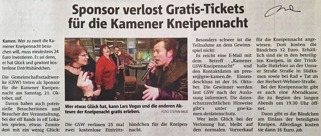Lars Vegas steht in der deutschen Entertainment Szene für Unterhaltung der Extraklasse. Der Sänger und Entertainer war Frontman der „Ace Cats“ (Megahit „Linda“), Sieger in der legendären Rudi Carrell Talentshow „Lass Dich überraschen“ mit 14 Millionen Zuschauern. Er war auch Mitglied des Gesangstrios „Ex-tra-drei“ im Vorprogramm von Harald Juhnke und Sänger der WDR 4-Band auf zahlreichen Stadtfesten und Events. 2010 erschien sein Album "Küsse, Jeans und Rock´n´Roll" mit den Radiohits „Pass gut auf auf mein Baby", „Rosarote Küsse“ und "Du bist kälter noch als Eis". Später gab es ein Wiedersehen mit seinen „Ace Cats“ zu einem gemeinsamen Auftritt in der ultimativen Oliver Geissen RTL-Chartshow. Nun meldet er sich 2021 zurück mit dem originellen Titel "Baby, tanz mit mir". VÖ am 3. Februar 2021auf „a la tete records“.